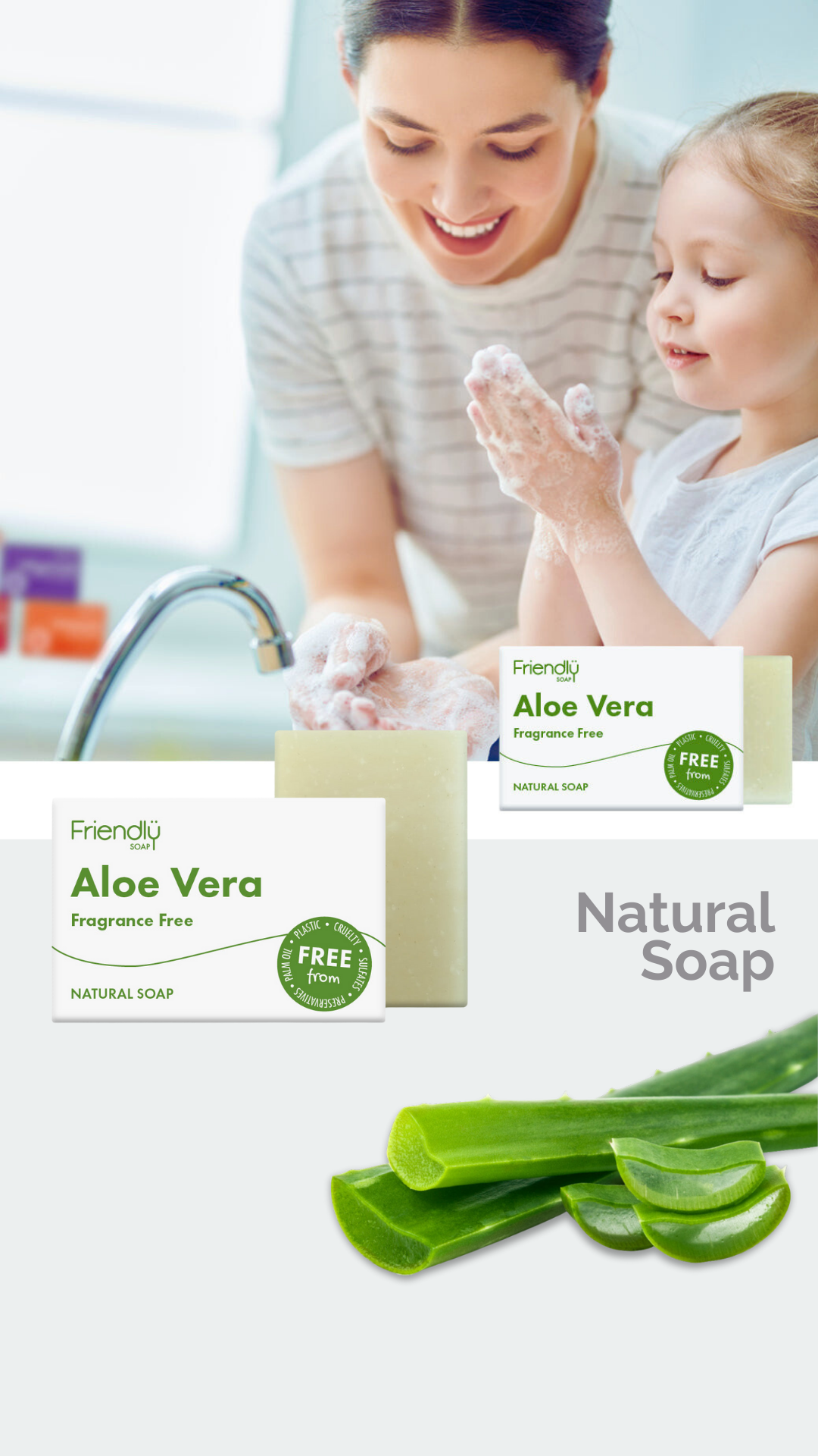 Aloe Vera Natural Soap - Fragrance-free. Gentle, soothing, and stripped back to the essentials our Aloe Vera Soap Bar is specially crafted for those who believe less truly is more. Free from fragrance, colourants, and harsh chemicals, this bar is a calming companion for even the most sensitive skin types.