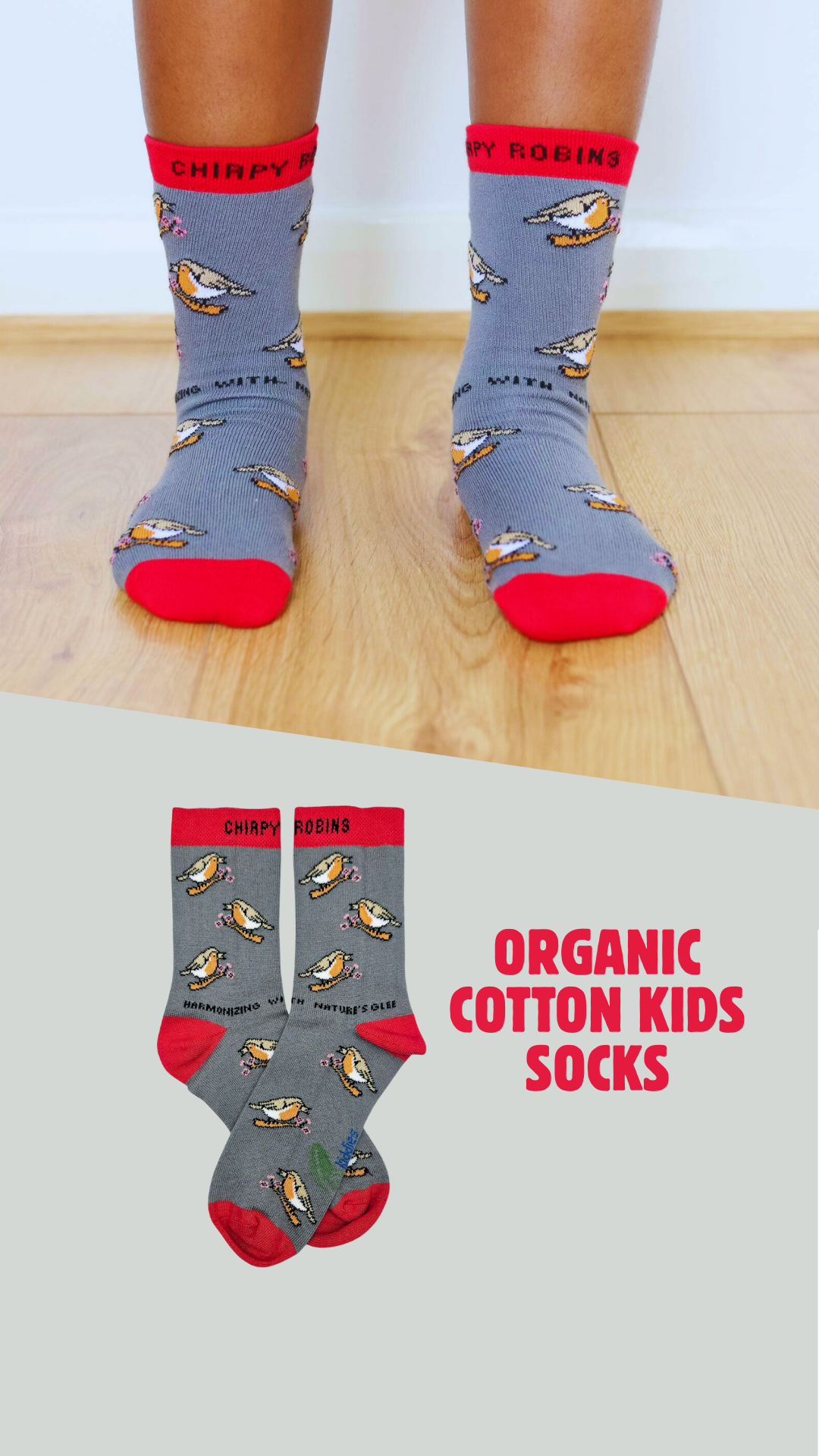 🌿 Chirpy Robin Organic Cotton Socks – Where Childhood Sings in Every Step! 🎶